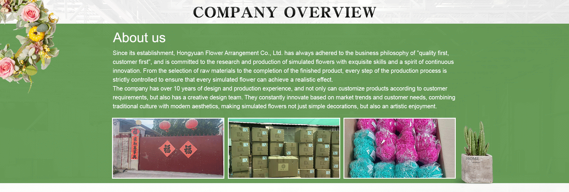 主な製品:造花、結婚式の装飾、クリスマスの装飾、人工植物
